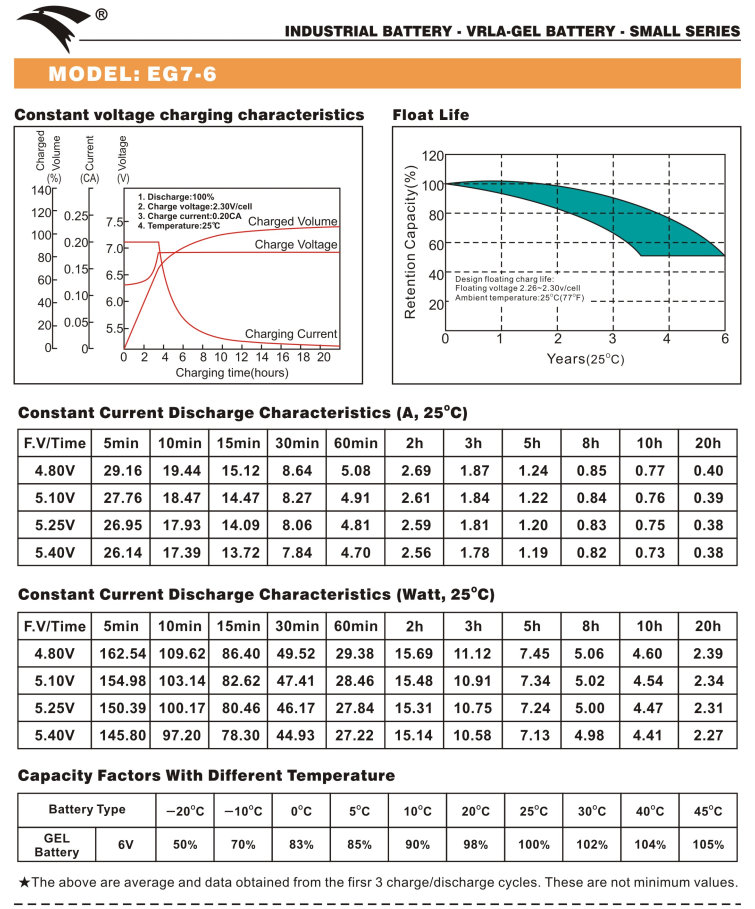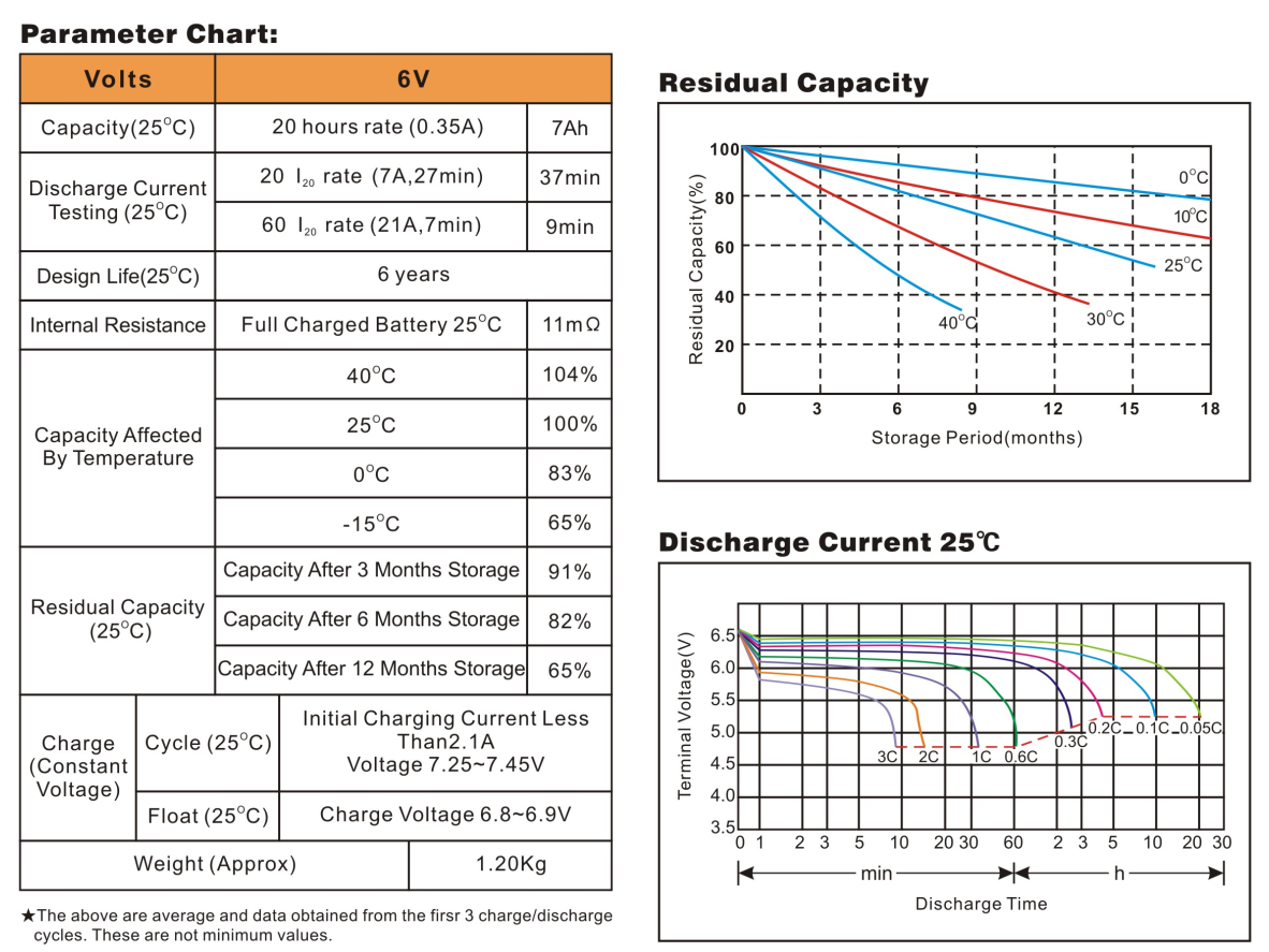 | Dung lượng (25℃) | 20 Hours Rate (1A) | 7Ah | ||