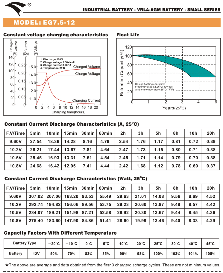 | Dung lượng (25℃) | 20 Hours Rate (1A) | 7.5Ah | ||